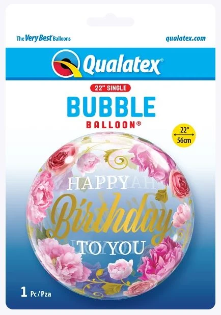 Accent your birthday themed party with this long-lasting 22 inch Bubble Birthday To You Pink Peonies. The perfect balloon for your birthday party, this 22 inch Qualatex birthday party balloon is great for setting the scene! This balloon includes a self-sealing valve, preventing the gas from escaping after it’s inflated. The balloon can be inflated with helium to float.