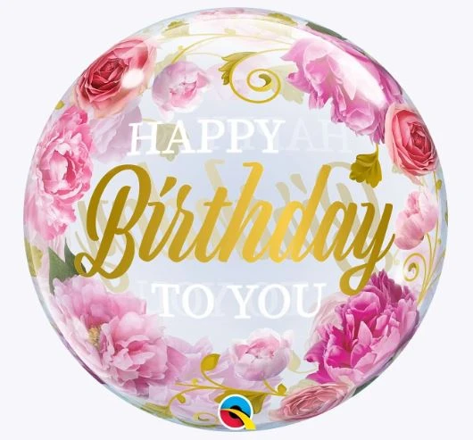 22″ Deco Bubble – Birthday To You Pink Peonies (1pc)