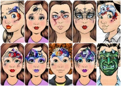 This amazing full color face painting board was created by amazing face painter Svetlana Keller, owner of Sparkling Faces