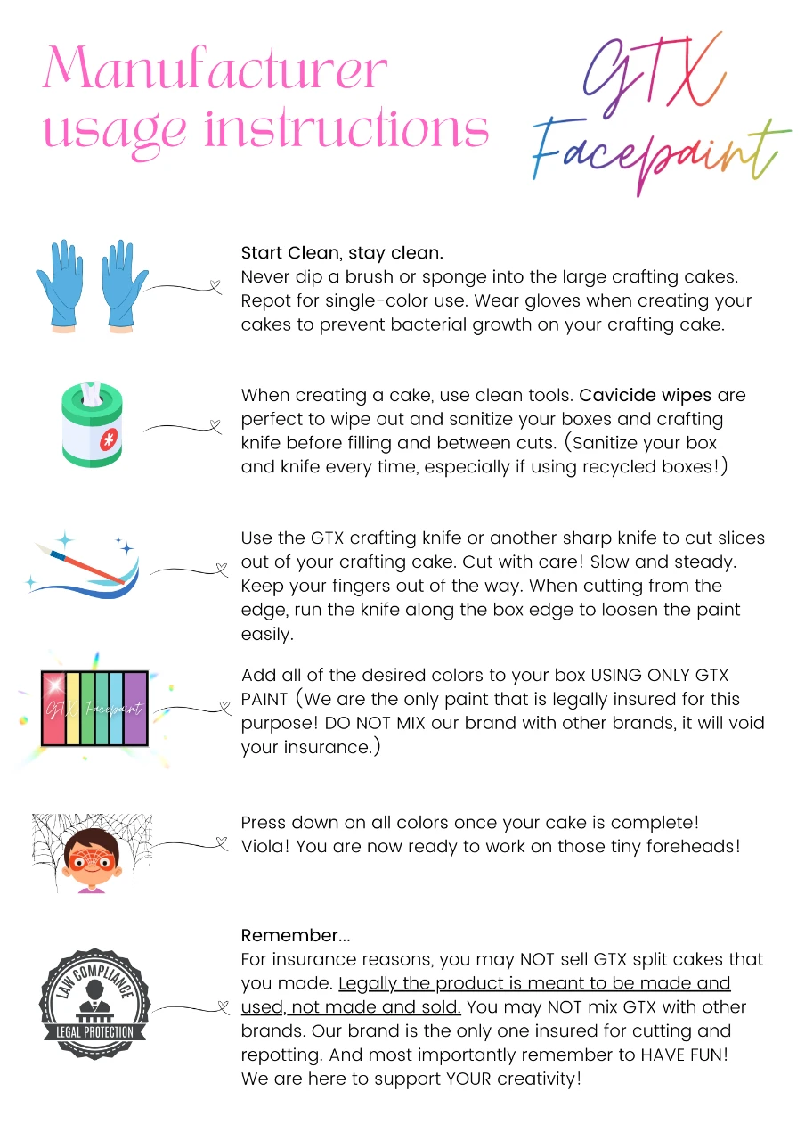 GTX Facepaint is a registered, FDA compliant line of professional face paint that meets UK and EU regulations as well as Health Canada standards.