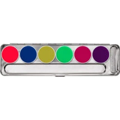 Bright colors in cosmetics-grade quality are very strong even under normal or artificial light. Under UV light sources, the colors are reflected in completely different intensities. Aquacolor is made of high quality ingredients to be blendable, comfortable on the skin while being vibrant and opaque. Kryolan Aquacolor has a creamy consistency that makes it flexible to resist cracking while drying quickly to a smudge-proof and durable finish. The oil-free compact make-up renders it particularly easy to apply using a slightly moistened make-up sponge or brush. Aquacolor UV Dayglow is easy to wash off with soap and water.