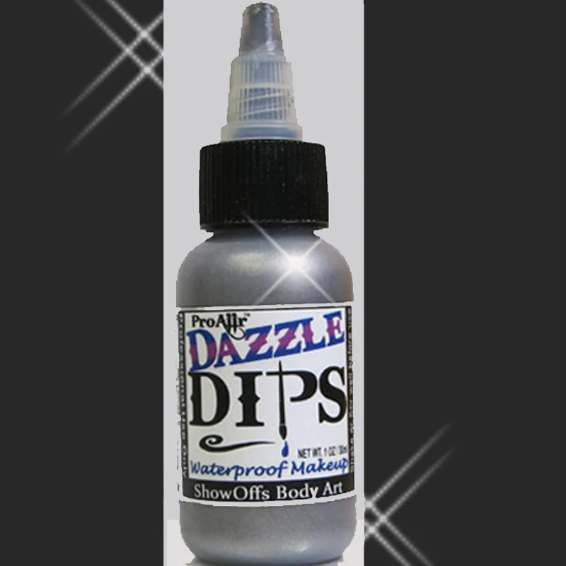 DAZZLE DAZZLE DAZZLE your customers with these wonderful metallic brush-on waterproof colors! Ready to DIP and go. No other product like this! Makeup that slides on with your brush and creates awesome brilliance! Plus it’s waterproof and smudge proof! Flip containers included. You can apply over eye lids, lips and anywhere else you want to draw attention too. You can accent all your body art designs. Skin safe. This is a metallic formula and it will fade a little faster than the standard DIPS because of the weight of metallic pigments. Clean up with Liquid soap, baby oil or makeup remover.