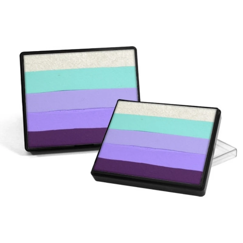 Rainbow cakes are excellent for base work for any design. They are used with a flat brush or sponge to create amazingly blended designs with one stroke. Rainbow Cake color combinations are designed to highlight and low light all with one container. Silly Farm carries over 20 different combinations of rainbow cakes designed to speed up your painting and help you create amazing designs. Rainbow cakes are also ideal for working with Pink Power stencils and Fast Faces kits. Expect 100-500 applications per rainbow cake.
